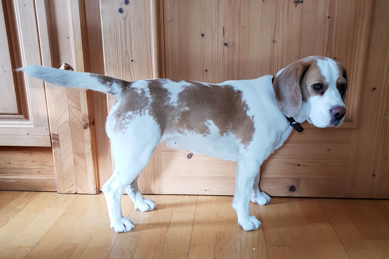 Reinrassige Beaglehündin in Braun-weiß gefleckt